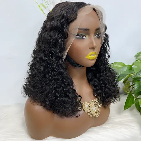 Double Drawn 13*4 Glueless Wig Pissy Curl Natural Human Hair Lace Wig Color 1B 2