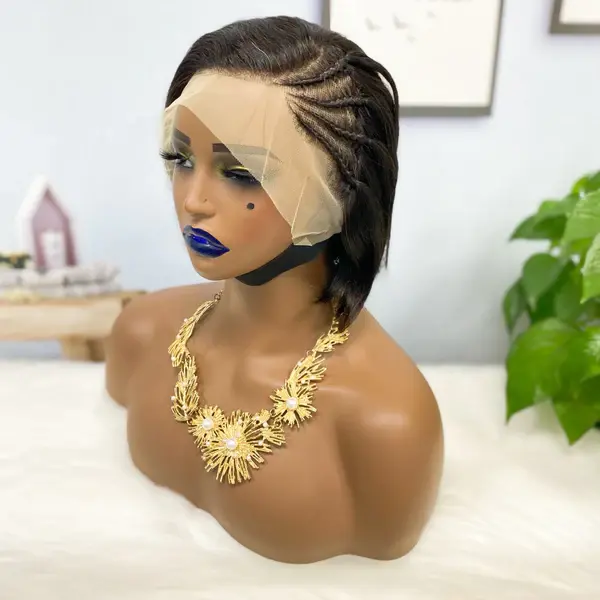 Double Drawn 13x4 Glueless Wig Pixie Curl Natural Human Hair Lace Wigs Natural C