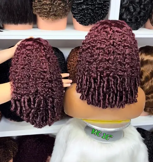 Double Drawn 13x4 Glueless Wig Magic Curl Natural Human Hair Wigs Wine Color 99J