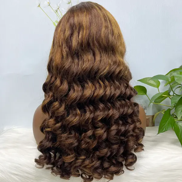 13*4 Lace Wig Sasson996 Curly Human Hair Lace Wigs Brown Color 4#