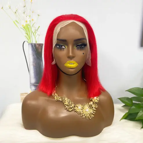 13*4 BoB Wig Straight Wigs Color Red 200% Density