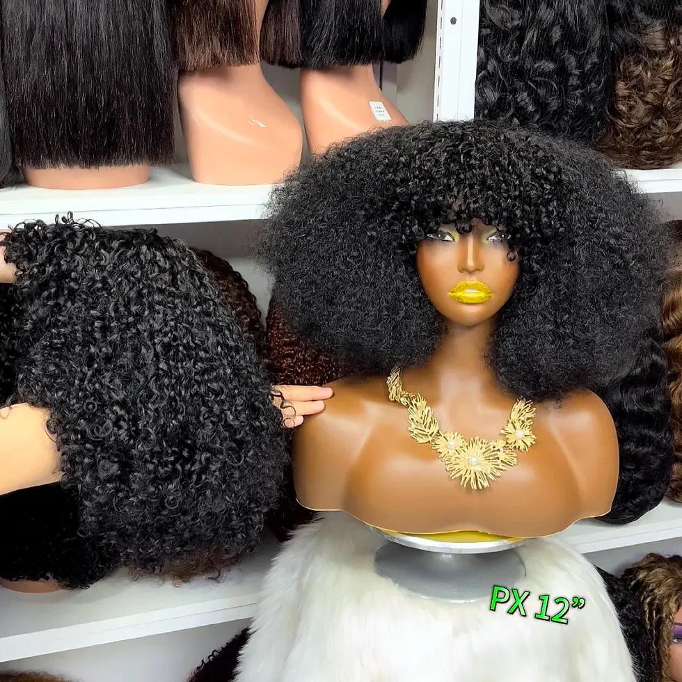 Fringe Double Drawn Human Hair Wig Fumi Curl Natural Color Wigs 14inch